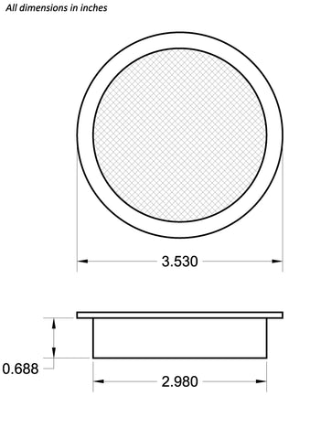 Fits into a 3 inch round hole.