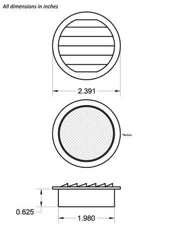 These round aluminum vents have louvers and a screen to keep insects out. They are easy to install in wood. Not made for glass, metal or PVC pipe. They fit into the hole made by a drill-type hole saw and are held in place by knobs on the side of the vent. No nails or screws are needed.