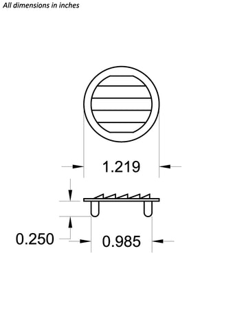1" Round Mill No Screen Vent, tab style - bag of 6