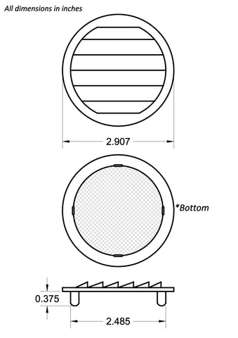 These round aluminum vents have a screen to keep insects out. They are easy to install. They fit into the hole made by a drill-type hole saw and are held in place by 4 tabs on the side of the vent. No nails or screws are needed.