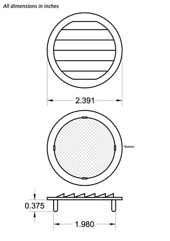 These round aluminum vents have a screen to keep insects out. They are easy to install. They fit into the hole made by a drill-type hole saw and are held in place by 4 tabs on the side of the vent. No nails or screws are needed.